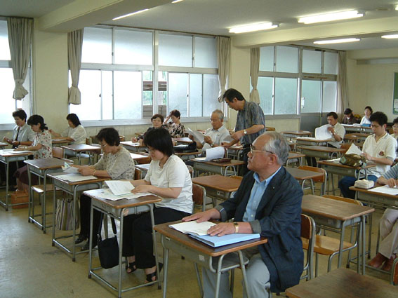 「リア王」では、7月13日(土)に愛媛大学助教授の井上先生をお迎えして、ビデオ等をまじえて「シェイクスピアとリア王」について、わかりやすく説明していただきました。「見よ飛行機の高く飛べるを」では、12月21日(土)に山田淳子先生を講師に、「女子師範学校寄宿舎の思い出」と題して、戦時下の女子師範学校で、ご自身が過ごされた寮生活での体験談をお話していただきました。