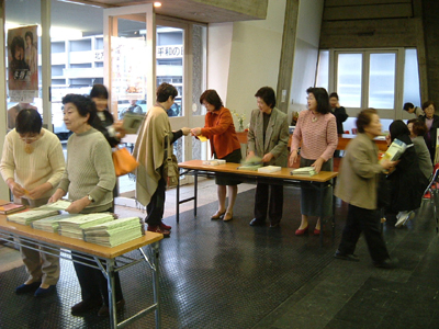 | ◆第75回例会「煙が目にしみる」報告 3月31日(木) いまばり市民劇場 第75回例会 加藤健一事務所 「煙が目にしみる」 がありました。 ★搬入は9時開始。 朝9時、白いトラックが到着しています。 ![]() 舞台では会場準備作業が始まっています。 ![]() さあ、搬入作業開始! トラックから舞台装置を運び込みます。 自転車が出てきました。何に使うんでしょう。(お芝居を観て分かりました。窓越しに見える芝居の演出用でした。) ![]() 越智さん↑ 三木さん↓ 野々村早紀役の長谷部歩さんの姿が見えます。 堀田さん↓ 会場の作業も始まってます。 ![]() 舞台セットのメイン=桜の木が出てきました。 ![]() 桜の枝が次々と出てきます。以外と軽い? この日は風が強かったです。新居田先生↓制作の長谷静香さん ![]() ↓桜の幹の部分です。表面は発泡スチロール製ですが、重い重い。 ![]() やっと、終わりが見えてきました。 ![]() 搬入が終わったのは10時すぎ。いつもなら30分程で終わるのに・・・。 みなさん、ご苦労様でした。 ★10時10分 搬入は終わりました。 ★15時30分 加藤健一さん登場 ![]() こっそり撮影しました。 ロビーで歌の練習?作曲?を30分以上しておられました。 声がすばらしいです。 ★17時 運営サークル作業は始まっています。 受け付け係の小野さん 久保さん 大政さん ![]() ★17時55分 運営サークルのミーティングが始まりました。 ミーティングが始まりました。司会は窪田さん。 会員数691名。前例会クリアは出来ませんでした。 これからも、みなさん!がんばりましょう! 制作・長谷さんから、「よろしくお願いします!」 みなさん、準備OKですか。 ★18時 開場です。 ![]() ★18時30分 上演開始 二人の人物の火葬の時間の物語。 ふたりともまだまだ若い。家族を残して亡くなるには早過ぎる。 そして、ふたりとも突然亡くなってしまったのです。 その家族はちゃんとした別れが出来ていないのです。 そこに、奇蹟か、霊能の目覚めか、おばあちゃんが霊媒師となって・・・。 劇中セリフに「お葬式とは、家族だけのものじゃない。故人が関わった全ての人のものだ。」 その人の人生とは、その人を知る人(本人も含めて)の記憶そのものだから。 故人だけでなく、登場人物全員の人生もあからさまとなり、 そして、その思いの丈を叫ぶ。 その思いは故人に届こうと届くまいとそれは意味の無いことなのでしょう。 これから生きて行くものたちに届きさえすれば良いのです。 加藤健一のおばあちゃんがおおいに笑わせてくれます。 死を見つめる事は、すなわち、生を見つめる事。 自分はこれからどう生きて行くのか、笑いの中に考えさせられるお芝居でした。 余談 会場が暗転で真っ暗になりました。当たり前の事ですが、このところの例会はずっと明るかったですから。 ★カーテンコール 1回目は幽霊役(青山 勝)と(坂口芳貞)の二人が遺影写真でカーテンコール。 2回目はその二人が遺影写真の中から登場し、大きな拍手で終演です。 ★20時10分終演 すぐさま搬出作業開始です。 ![]() ★20時30分 加藤健一サイン会 ![]() ![]() ![]() ![]() 搬出作業はドンドン進んでいます。桜の木が残ってました。