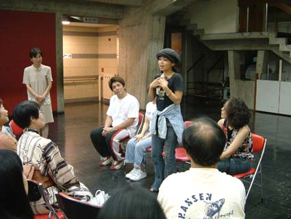 | ◆第77回例会「ミラクル」報告 7月24日(日)イッツフォーリーズ「ミラクル」が上演されました。 ★搬入は8時30分開始。 今治市公会堂横にはトラックが2台到着しています。 ★会員さんの搬入作業(2台目のトラック分)は10時開始です。 ↓ダダ役の ごんどうけん さんが写っています。 劇団員の作業が手早く、会員さんは建物の中の作業 ↓雪の仕込みが見れました。 30分ほどで作業終了です。 ★11時、制作担当者との打ち合わせ 制作の (左)サブ平間さんと(右)土屋さん 香川丸亀の事務局長三宅さんが応援に来てくれました。↓ ★15時 出演する俳優さんたちの準備運動風景 主役アル役の小野文子さん↓ こちらはダダ役のごんどうけんさんや井上一馬さん みなさん ストレッチに発声練習に すごい熱気。 これは? 洗濯物が干されています。 エラソーニの肉ジュバンも干されています。 ★17時 会場準備風景です。 さあ!みなさん!がんばりましょう! 会場内座席準備の様子↓ 劇団グッズ販売のコーナー ★17時53分 ミーティング開始です。 制作 土屋さんの挨拶 みなさん、準備OKですか。 ★18時05分 開場です。 受付の様子 ★18時35分 上演開始 アルはひとりぼっち、ママを求め、二人の幽霊と出会い、「ママってなあに」と考え、 人々にあなたは誰とたずね、父親にどうしてかとたずねます。 アルは、キキに「ママは死んだんだ」と言われ、 飼っていた鳥の死から「本当のこと」を知った、「そして、幽霊たちは見えなくなるのだ」と聞かされます。 「雪が降ればママは帰ってくる」という父の言葉を疑い、うその雪(人口雪)を降らせます。 うそって何、ほんとうって何なんだ。愛とは何か。 気付いた時、アルは大人になっていました。 昔、色々なことを考えていた。 色々なことがわからなかった。 死とは何だ。生きるとはどういうことか。何のために生きるのか。 楽しいとはどういうことか。悲しいとはどういうことか。 「ほんとう」と「うそ」の違いは。 友達って何。私は何なのか。人とは何ものか。 昔、心の中で、何だろう、どうしてなのか、と相談していたではないか。 あれは、私の幽霊だったのかも、 彼らは、心の中の友達だったのかも。 そう、よく考えてみると、 今でも何かをするとき、いつも相談しているではないか。 もう一人の、いやもう二人の自分に。 昔、いや、今でも、親や先生、誰かに聞いたことが、 どういう意味か解らなかったことが、 そうかこういう意味かと、はっと気が付くことがある。 ミラクル=奇跡とは、まさにそのことに違いあるまい。 「ほんとうのこと」に気付く瞬間、それこそがミラクル。 歌に踊り、素晴らしいと言うしかありません。 出演者の個々の才能に、熟練の一体感。 演技力、歌唱力、チームワークの結晶です。 あおい輝彦の魅力もたっぷりと見せていただきました。 マジックや、ストップモーション、流れるようなストーリー展開。 あっという間の2時間20分でした。 その奥にある、メッセージや、哲学が、深い余韻を残してくれました。 ★20時55分終演 すぐさま搬出作業開始です。 ★21時10分 ロビー交流会開始 司会は 越智さんです。 出席者は左から井上一馬さん・小野文子さん・平澤由美さん・茂木沙月さん 素晴らしかった。感動した。目に力が有った。と会員さん。 井上さんから、「四国公演の中で今治が最高の舞台だった。反応が一番。」 小野さんから、「やってて良かった。今治の会員さんはお芝居を良く知っている。」 平澤さんから、「私達が感動した。また、勇気付けられた。」 茂木さんから、「何も言うことはない。皆さんに拍手です。」 記念写真を撮りましょう!と井上一馬さんが・・・ みなさん、ほんとうに有難うございました。 15分ほどで交流会は終了です。 その間も搬出作業はどんどん進んでいます。 非常に重い制御盤を6人がかりで降ろす。 搬出作業終了の挨拶です。みなさん有難うございました。拍手拍手! 小野文子さんも最後まで手伝ってくれました。↓ ★22時、搬出作業は終了しました。 みなさん!お疲れさま。 トラックの積み込みも終わったようです。 きれいに空っぽになった舞台。 次の公演(明後日)は福岡県 みなさん、ご苦労様でした。 |