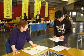 | ◆第87回例会報告 3月29日(木)第87回例会「お登勢」が行われました。 ★3月29日 午前11時搬入開始です。 トラックがすでに来てました。 さあ ここが舞台です。 よく見てください。舞台の前側に仮設の台が組まれています。 搬入作業に先立ち、注意事項伝達がありました。 怪我だけはしないようにしましょう。 搬入作業が始まりました。 女子高校生サークル3人 はりきってます。 搬入作業は30分ほどで終了です。 トラックは空っぽになり、洗濯物が干されています。 ★搬入作業の後、のぼり旗 を立てました。 けっこう大きいですよ。 ★午後2時30分 「お通し」の準備が始まりました。 担当サークルの方たちが 次々とお料理を運んできます。ずらっと並んだごちそう。 「せんざんき」=味付・鳥のから上げ 「いぎす」=大豆粉+海草(いぎすという名前)で固めたもの ★午後3時 前進座のみなさん いらっしゃいませ。 嵐広也さんの顔も見えます。スタッフ・出演者のみなさん!たっぷり召し上がれ。 みなさん お味はいかがでしょうか。 会場のロビーで打ち合わせ ★5時 対面式です。会員さんと役者さんのごあいさつ。 会場準備も進みまして・・・ お通しの残り物を・・・ ★5時50分 開場前のミーティングが始まりました。 司会は新居田さん。 33名 減でした 残念です! ★6時 開場です。 無料招待の 中高生たち。 みんな よい演劇を体験してくださいね。 ★6時30分開演です。 人形が登場するなり拍手が・・・ すると人に変身! 舞台にみんな引き付けられて・・・あっという間の1時間で休憩になりました。 お登勢 は純粋無垢の象徴で 身分も低く、教養も無い、しかし、人としての強さとやさしさを持っている。 それに引き換え その他の登場人物は、なんと愚かしく思えるのだろうか。 幕間 ついにお登勢は片思いの相手と結ばれて・・・ハッピーエンド。 なのですが、ほんとうにお登勢はしあわせになれるのでしょうか。 個人的には 中村梅雀演じる主人公が 悪人に思えてならないのですが。 それにしても、前進座の役者さんたちはさすがですね。 芝居がきりっとしてすばらしい。 カーテンコールで 拍手!拍手! お人形さんも拍手!拍手! すばらしい感動をありがとう。 ★9時5分 終演です。 ★ロビー交流会です。 出席は 中村梅雀さん 浜名美貴さん 藤川矢之輔さん 梅雀さん 「ホームページ見てください。」 美貴さん 「セットから、あらゆる小物に至るまで舞台芸術の粋が詰め込まれていることをわかってください。」 矢之輔さん 「前進座劇場へもお越し下さい。」 すばらしいお芝居をありがとうございました。 ★ 9時35分 交流会は終了です。 搬出作業はずいぶんと進んでいます。 大勢の会員さんが残ってくれています。 ★10時35分 終了です。 きれいにかたづいた舞台 次は いよいよ阿波の国です。みなさんご苦労様でした。 |