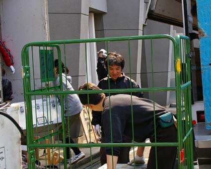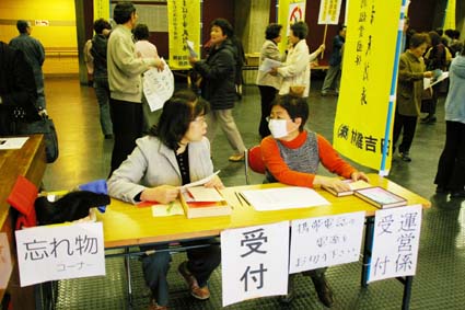 | ◆第93回例会報告 3月28日(木)第93回例会 木山事務所「出番を待ちながら」行われました。 ★3月28日 午前10時です。 トラックはすでに到着しています。 ★搬入作業が始まります。 今日も大勢の会員さんが駆け付けてくれました。搬入開始です。 担当幹事の村上さん ↓ 担当幹事の沖濱さん ↓ 大物セットが 入ります。 これが最後かな? みなさん、ご苦労様! すべて運び込まれました。トラックは空っぽになりました。 搬入作業は30分ほどで終了です。 ★打ち合わせ 木山事務所・制作の 松井伸子さん(松山市民劇場出身だそうです) シャイな方です。 事務局長の越智さんは目をつぶってしまいました。 ★午後12時00分 「お通し」の準備が出来ました。いつもより早い「お通し」開始です。 トン汁は 碧サークル新井田さん。 寒天のお菓子やオハギは紺碧サークルのみなさん。 ↓気になる、村上さん 越智さんと話が弾む 新井純さん↓ 今回も「お通し」は大成功。 お通しに参加された会員さんの写真が撮れなくて残念! 劇団の皆さん たいへん喜んでくださいました。甘いものは好評で、今後のメニューにも影響を与えそうです。 みなさんご苦労様でした。 ★午後5時 担当サークルのみなさん 作業開始。 ★5時55分ミーティング開始です。 司会は沖濱さん 「クリアできず残念です!」 でも担当サークルでたくさん増やして、活気はあります!。 製作 松井さんの挨拶。 今回クリアできなくても次につながる例会にしてほしい。と励ましのお言葉でした。 次の次の例会 「母さん」の担当 柴田会長。 担当サークルが集まってくれるとはりきっています。 ★6時 開場です。 今例会では、携帯電話の電源を切って下さいと大勢で呼びかけました。 ★6時30分開演です。 引退した 女優専門の慈善老人ホームの物語。 場所はイギリス。 晩年をいかに生きるのか。 互いに励ましあい、寄り添い、明るく過ごす生活。 しかし、今の姿は 過去の華やかで輝かしい栄光と比べれば、屈辱以外の何ものでもない。 女優という 人を演じる技術を学んだ職人が、真に自分を演じることが出来るのか。 自らの人生というシナリオにしたがって。 人は老いる。そして生きる。 その魅力的な登場人物たち。老いという暗闇に ほのかな明かりが見えたようだ。 拍手! 拍手! (T_T) 携帯電話が 何回か鳴りました。 あんなに頑張って呼びかけたのに。 どうして?どうして! どうして会員が減るの??・・・? ★9時00分 終演です。 すぐ、ロビー交流会です。 木山さんが前説してくれました。 左から 北村昌子さん、 川口敦子さん、 加藤土代子さん。 みなさんが喜んでくださるかしらと、不安もあったが、たくさんの拍手をもらって安堵した。 年配の舞台女優が少なくなって、こんなお芝居いつまでできるかしら。 みんな喜寿ですから。あら、川口さんはもうちょっとでしたね。(笑) 四国は東京より桜が遅いのね。東京へ帰ったら桜は終わってるかしら。ウィングスのみなさんですから。(笑) 司会は 村上さんです。 舞台直後のお疲れのところ、有難うございました。 すばらしい感動を有難うございました。と、拍手!拍手! 名残惜しい交流会は終わりました。 ★搬出作業はすでに始まってます。 あっという間に片付きました。 きれいになった舞台 と トラックに収まった舞台装置。 ★10時30分終了です。 みなさんご苦労様でした。 |