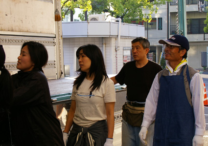 | ◆第94回例会報告 5月12日(月)第94回例会 文化座「天国までの百マイル」が行われました。 ★搬入は公演前日 5月11日 午後5時です。 トラックはすでに到着しています。 ★搬入作業が始まります。 今治公会堂は舞台が狭いため、大きな張り出し(仮設の足場)が組まれています。 搬入作業には、大勢の会員さんが駆け付けてくれました。 監督さんから 指示が有りました。けがのないようにお願いします。 搬入開始です。 担当幹事の三木さん ↓ 張り出し部分に照明を当てるための足場(イントレ)です。↓ 舞台前に積み上げられた舞台装置。↓ 搬入終了です。文化座のみなさんは非常に手際が良くて・・・。 みなさん、ご苦労様でした! トラックは空っぽになりました。 搬入作業は30分ほどで終了です。 ★12日朝 打ち合わせ 文化座・制作の 古戸井さん。 右は事務局長の越智さん。 古戸井さんは、幹事の三木さん(左)とは 同じ淡路島出身で 高校の先輩後輩だそうです。 ★午後12時00分 搬入が前日ということもあり、いつもより早い「お通し」開始です。 みなさんご苦労様でした。 ★午後5時 会場の準備作業が始まります。 ★5時50分ミーティング開始です。 司会は三木さん 「1名クリアです!」 担当サークルでたくさん増やしてくれました! 担当サークルのみなさん \(^o^)/ 製作 古戸井さんの挨拶 出演者のサイン色紙をじゃんけんで分けました。 ジャンケンに勝った担当の会員さん。 ★6時 開場です。 携帯電話の電源を切って下さい! 山田さん↑ ★6時30分開演です。 バブルがはじけた。 事業に失敗した主人公。 彼を救ったは、不幸な身の上の マリ 。 彼の母親は重い心臓病。 金は無いが、時間は有る主人公が母を助けるため、必死になる。 死を見つめた時、生きることに気が付き、 母への愛は、今まで見えなかった、回りの人たちの愛に気づかせてくれる。 マリは、主人公を元の家庭に戻そうと、ひとり旅立つ。 マリは浅田次郎の夢?聖母か天使か。 男性なら、マリを選ぶのか、家庭に戻るのか、究極の選択になるでしょう。 このマリという役は、佐々木愛さんのキャラクターにピッタリ。生涯の当たり役になるかも? みなさんの見事な演技ですばらしい舞台でした。 そして、なにより、舞台装置を今治バージョンに組み上げ、上演できるように仕上げて下さった劇団関係者のみなさんに深く感謝申し上げます。 拍手! 拍手! \(^o^)/ ★9時10分 終演です。 すぐ、ロビー交流会です。 司会は。 まずは、阿部勉さん 米山 実さん が来て下さいました。 阿部勉さんは 肋骨にひびが入る怪我の状態で演技をされたそうです。 米山実さんへは、 会員さんから絶賛の声。 左から、阿部勉/阿部敦子/佐々木愛/有賀ひろみ/米山実 のみなさん。 佐々木愛さん=風邪をひいてしまって、声が別人みたい・・・。 でも最後にたくさんの拍手をもらってとてもうれしかった。 有賀ひろみさん=今治は初めてですが、とてもたのしかった。 阿部敦子さん=有難うございました。 お疲れのところ、有難うございました。 と、拍手!拍手! 交流会は終わりました。 ★搬出作業はすでに始まってます。 さずが、文化座さん!あっという間に片付きました。 ★10時30分終了です。 みなさんご苦労様でした。 |