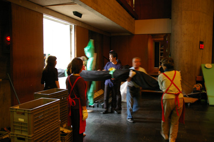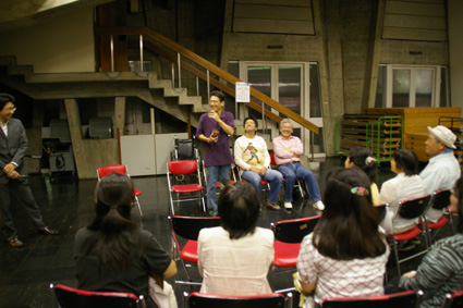 | ◆第102回例会報告 第102回例会 俳優座劇場公演「サマーハウスの夢」が9月15日(火)行われました。 ★今日もトラックが到着しています。 搬入は午前9時10分開始予定 あいにくの 雨! 搬入口に屋根がないんです。 こりゃ大変だ! 作業開始にあたり、舞台監督からのあいさつ。けがのないようにお願いします。 雨は小降りになりました。 雨が止んでくれたようです。 搬入終わり。ご苦労様でした。 ロビーでは 製作の宮沢さんと打ち合わせです。 ★午後2時すぎ 劇団イッツフォーリーズ の皆さんが来場 文化庁の主催で 今治小学校で公演が10月にあるそうで、今日はその打ち合わせのついでに市民劇場に立ち寄ってくれたのです。 演目は 「野菊の墓」 小学校の体育館でするそうです。 ★午後3時ごろロビー。 役者さんがロビーに出てきてくれました。 石波義人さんです 鈴木ほのかさんです。 今治には 98年のデュエット以来だそうです。10年ぶりですね! お美しい! 加藤忍さんです。 なにやら煙が出るものをくわえておられました。のどのケアですね。 ★午後5時 会場準備作業が進んでいます。 総合受付は 碧サークル 新居田さんです。 ★5時50分ミーティング開始です。 司会は桑村さん クリアできず残念でした。みなさん(T_T) ☆製作の宮沢さんから あいさつ 「俳優座劇場は市民劇場のみなさんに支えられています。」 「今日のお芝居に感動して、そのすばらしさを、新型インフルエンザよりも早く、広めてください。」(笑い) 出演者のサイン色紙が、じゃんけんの勝者に!おめでとうございます。 ★6時 開場です。 担当のみなさん 頑張ってます。 弓山さんは ロビー交流会の司会の打ち合わせ 三木さん 受付ですか。 堀田さんも元気です。 ★6時30分開演です。 絵本の世界と 現実世界が つながって。 主人公の妄想か、幻覚か。 ストーリーは唐突で、非現実的。 絵本の世界からからやってきたベル(ディズニーのアニメで有名な「美女と野獣」の主人公) 彼女は歌でないと 私たちと会話できない・・・・という設定。アニメは確かにミュージカル仕立て? 鈴木ほのかさん 畠中洋さんの 圧倒的 歌唱力に魅了されて・・・。 ある会員さんが あれはオペラだ! と感想を述べておられました。 すごい!すばらしい! 後半は 加藤忍さん(アマンダ)は初めはオンチ。 最後にうまく歌える人に・大変身!拍手!拍手! 哲学的なテーマも盛り込まれ・・・。 みんな 歌に救われ、ハッピーエンド。 歌は心を癒し、人の価値観を変える力が有る。人生を明るく、豊かにする。 歌は 言葉では口に出しにくい感情でさえも、素直に伝えることができる。 絵本の世界から見れば、現実世界は地獄だ。弱い者が飢え、死に、殺されている。 そのほかにも、男性諸氏には耳の痛い話も・・・。 カーテンコールは 2回。 大きな拍手に \(^o^)/ 歌のすばらしさに圧倒された舞台でした。 ★終演後交流会が始まりました。 シンクレア役の 大原康裕さん シンクレアの名前が覚えずらいですね バルドマー(野獣)役の 米谷毅彦さん ふだんは歌で観客とキャッチボールをしているので、演技が加わるとより難しくなります。 グレイソン役の 石場義人さん 初演時、記録用の録画をした舞台で 歌をまちがえてしまいました。 ベル(美女)役の 鈴木ほのかさん ふだんはGパンにTシャツとラフな格好なんですよ。交流会ということでおしゃれしてきました。 ここで交流会は終了です。拍手!拍手! ★午後9時40分 搬出作業はすでに始まってます。 照明の設備は 今治だけのために運んで設置しています。他のホールでは不要の作業にうんざりですね。 大勢の会員さんが残ってくれました。みなさんありがとうございました。 ★11時00分 作業は終了です。 トラックへの積み込みはもう少し。 明日は松山です! |
