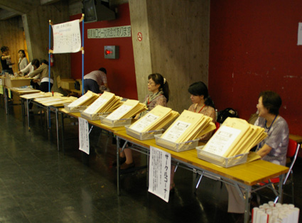 | ◆第108回例会報告 第108回例会 劇団 前進座公演「あなまどい」が9月4日(土)行われました。 ★搬入は午前11時、トラックがすでに到着しています。 今回も 90センチの張出しが設置されています。 理由は後で・・ 舞台監督さんのあいさつから作業が始まります。 作業開始です! けがのないようにお願いします! 前進座は、役者さんもスタッフも全員が作業し、手際の良さは際立っています。 堀田さんも大活躍! 何に使うのか、折りたたみ自転車。 30分で終わりました。 ★11時 30分 製作/豊田さん 担当/嵐芳三郎さん と打ち合わせです。 ★3時 公会堂ロビーにて 浜名実貴さん と柴田さん 堀田さんと嵐芳三郎さん ★4時30分 対面式の様子 会員を減らさない芝居をやります!と、嵐圭史さんから心強いお言葉! ★5時 会場準備が始まっています。 小野さん↑ ★5時45分 ミーティング開始です。 司会は 担当柴田さん 退会が多く、クリアはできませんでした。(T_T)! 製作豊田さんから あいさつ 嵐芳三郎さん あいさつ 嵐広也 改め 嵐芳三郎を襲名し、はじめての公演です。 これからも演劇に打ち込む姿を見て下さい。宜しくお願いします! ★6時 開場です ★午後6時30分開演です。 武家のしきたりによって、父は殺され、自分は敵討ちの旅へ 結婚したばかりの妻を残して。 敵を討つための旅とはどのようなものか。 その旅の悲惨なこと。資金はすぐ底をつき。物乞いにまで身をやつす。 生き延びることに精一杯の生活を何年も続け・・・。 やっと、カタキにめぐり合えた時。その時・・・私はカタキを殺せなかった。 しかし 私は仇討ちの本懐を成し遂げたとして、国へ帰る。 34年ぶりの 我が家は。分かれた妻は・・・・。 再開の場面は 涙なくして見られない。 少ないセリフに、二人の思いがひっしと伝わる。すばらしい芝居だ! 武士の時代。その武士の不幸と救済。 刀という武士のシンボル。その刀に一瞬先の人生、命運、生死までも賭けなければならない武士。 無意味な価値観に長い年月縛られ続ける人。 まさに今の時代に通じる物語でした。 年老いて、新しい生活を目指す夫婦。明るい未来を予想させて終幕。 拍手 拍手のカーテンコール \(^o^)/ カーテンコールに出てこられない出演者のみなさんにも、拍手!拍手! すばらしい感動をありがとう<(_ _)> ★9時30分終演 ロビー交流会が始まります。 司会はハピネスサークル 山田さん 演出 橋本さん 西川かずこさん 藤川矢之輔さん 浜名実貴さんの4人が出席してくれました。 矢之輔さんの軽妙なお話から、場が和みます。 「悪役にもたくさん拍手をいただけました」 西川かずこさん「おもちを食べている時はセリフが言えません」 橋本さん「カーテンコールは老夫婦の余韻を残す演出です」 浜名実貴さん 「あたたかい拍手をいつも有難うございます」 感動をありがとう 楽しい交流会が出来ました。拍手拍手\(^o^)/ ★即搬出作業が始まっています。 手際よく 搬出もおわり。 遅くまで、みなさんありがとうございました。 ★10時30分 作業は終了です。ご苦労様! 明日は移動日、お休みだそうです。あさっては高松です。 |