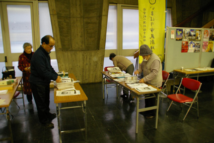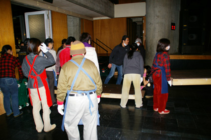 | ◆第110回例会報告 第110回例会 劇団 文化座公演「てけれっつのぱ」が1月20日(木)行われました。 ★搬入は例会前日19日(水)午後7時開始です。今治はホールの問題からいつもより早めの搬入になりました。 トラックがすでに到着しています。運転手は、またまた「サンペイさん」でした。 今治バージョンともいえる、今治のためだけの舞台装置になります。本当にありがたいことです。 夜の搬入にもかかわらず、大勢の会員さんが参加して下さいました。 作業開始です! 夜の搬入は はじめてです。けがのないようにお願いします! 役者さんも参加されています。てきぱきとすばらしいです。 作業は30分ほどで終了です。ご苦労様でした。 ★例会当日20日 4時 ロビーにて 製作 津端さんと 打ち合わせ。 ★5時 公会堂ロビーでは作業が進んでいます。 堀田さん いつも元気ですよ。 ★5時45分 ミーティング開始です。 司会は 担当阿部さん 会員数が502名です。(T_T)! 会員のみなさんおひとりおひとりが行動して下さい。 製作 津端さんから あいさつ 「元気の出るお芝居です。 みなさんもがんばって下さい。」 ★午後6時開場です。 カーテンコール担当 打ち合わせ ★午後6時30分開演です。 「てけれっつのぱ」とは死神を追い払う呪文。 明日のために、とりあえず念じておこう。あしたはあした。生きていく。 明治維新によって翻弄される人々。 無力とも思える女性が、なんと力強いことか。 新しい生き方に目覚めていく人々。 どんなに時代が変ろうとも、普遍的なテーマですね。 人は生きていく。人と共に生きていく。さあ強く生きていこう。 明日のために、何をしなければならないのか。何ができるのか。てけれっつのぱ! 拍手 拍手のカーテンコール \(^o^)/ 残念ながら、拍手ではなく手拍子になりました。がっくり! 最後に佐々木愛さん から「劇団と市民劇場がともにがんばりましょう!」と力強い励ましのメッセージをいただきました。 ★9時20分終演 ロビー交流会が始まります。 司会は 弓山さん 左から 阿部敦子さん、佐々木愛さん、有賀ひろみさんの3人が出席してくれました。 文化座は創立70周年を迎えます。市民劇場も大変だと思いますが、一緒にがんばっていきましょう。 感動をありがとう 楽しい交流会が出来ました。拍手拍手\(^o^)/ ★即搬出作業が 大分進んでいます。 搬出もおわり。 遅くまで、みなさんありがとうございました。 ★11時30分 作業は終了です。ご苦労様でした! 明日は高松です。 |