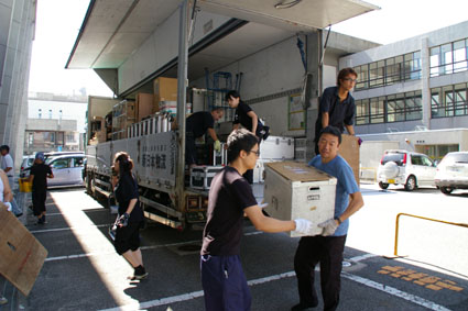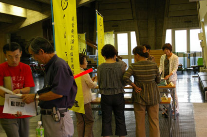 | ◆第114回例会報告 第114回例会 劇団こまつ座公演「父と暮せば」が9月12日(月)行われました。 ★搬入は当日 午前10時開始です。 トラックがすでに到着しています。 制作の菊池さんのあいさつから作業が始まります。 注意は同じ=重いものも軽いものも 二人で持ちましょう。 けがのないように! 音響の人 民藝の千葉茂則さんによく似ています。 事務局 山崎さんと三木さんが ・・・ 作業は30分ほどで終了です。ご苦労様でした。 ★午前10時30分 ロビーにて 事務局 山崎さん(左) と 制作 菊地さん(右) が打ち合わせです。 ★午後5時 ロビー 例会の準備が始まっています。 こまつ座(井上ひさし)物販が多いですね。 総合受付 木村さん 以下 三木さんが撮ってくれた写真です。みなさんいい顔してますね。 ★午後5時50分 ミーティング開始です。 担当 阿部さん 「前例会クリアです。」 \(^o^)/ 製作 菊池さんから あいさつ 前例会クリアで迎えてくださり有難うございます。 「父と暮せば」は 1時間20分と短い芝居ですが、役者 スタッフ一同 全力でお届けします。 ★午後6時開場です。 ★午後6時30分開演です。 原爆のあの瞬間から、奇跡的に生き延びた主人公 心には大きな傷をかかえて。 幽霊となって娘を助けようとする父。 父と娘の せつなくそして熱いセリフの交換は、 涙と笑い、笑いと涙、リズミカルにひいては押し寄せる。 井上作品の真髄だ。 「生きてちょんだいよー」 先の大震災に見舞われた多くの人たちに届け! 拍手 拍手のカーテンコール \(^o^)/ 黒木和雄監督 映画「父と暮せば」 が先日テレビで流れたばかりだった。 舞台の方が 何倍も すばらしかった。 ほんとうにすばらしかった。 生きるということそのものだった。 ★8時45分終演 ロビー交流会が始まります。大勢の会員さんです。 出席は 辻萬長さん 栗田桃子さん 。 まず 公演後のカーテンコールが演出上なかったため、代わりのカーテンコールです。 交流会司会は 中村さんです 辻萬長さん 栗田桃子さん あいさつ 質問 せりふを忘れたことがありますか? 番長さん= それは言えません。(笑い) やはり長い舞台人生ですからあります。 質問 栗田桃子さんのお父さんは、蟹江敬三さんというのは本当ですか?どんなお父さんですか。 栗田さん= はいそうです。朝「おはよう」とあいさつする普通のお父さんです。 集合写真も撮りました。 楽しいお話を有難うございました。 お礼をかねて、みんなで歌を歌いました。 トワ・エ・モアの 「この街で」を歌いました。 ★即搬出作業が 大分進んでいます。 搬出おわり。 ★9時10分 作業は終了です。ご苦労様でした! 明日は松山です。 |
