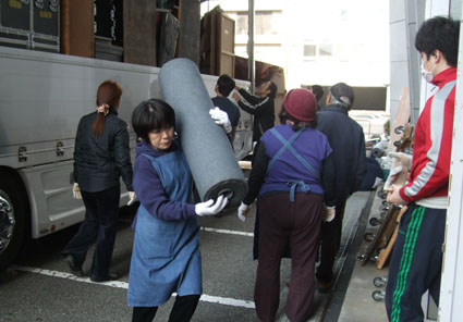 | ◆第116回例会報告 第116回例会 劇団テアトルエコー公演「フレディ」が1月25日(水) に行われました。 ★搬入は 9時 開始です。 トラックがすでに到着しています。 ![]() 制作 白川さんの あいさつから、搬入が始まります。 今治市公会堂は 全国ワースト1の劇団泣かせの小屋です。 ![]() 大和田さん がんばってます。 ![]() これは 巨大なバーベル鉄球? 軽いんだ〜 ![]() ![]() ![]() ![]() ![]() トラックは空っぽになり、搬入は終わりで〜す。 ![]() ![]() 30分ほどで終了。搬入は終わりです。 ↓ 楽屋係り 碧Uサークのおふたり ![]() お花が栄えますね。 ![]() 制作 白川さん(中) と 事務局 山崎さん(右)打ち合わせです。 ![]() ![]() ★12時56分 今治駅にお迎えに行きました。 記念写真 ![]() 駅前の さるとびさすけ像 杉村さん「まげ髪が鳥に見える!」と言ってました。 ![]() 午後3時 ロビーにて 松澤さんと大和田さんがジャグリングの練習を始めました。 ![]() けっこう失敗してますね。(笑) ★午後5時 例会の準備が始まっています。 ★午後5時50分 ミーティング開始です。 担当 沖濱さん 「運営サークル 参加率100%達成でしたが、残念!前例会クリアできませんでした。」 製作 白川さんから あいさつ 「震災で東北の例会が中止になりました。そんな時、東北の会員さんは会費を納めに来てくれたそうです。 いかにその地域に市民劇場が根付き、大切なものであるか、なくなって始めて気づいたのでは遅すぎます。 今治の会員さんの奮起を・・・」 ★午後6時開場です。 サーカス団の お迎えです。 招待の子供たちも喜んでます。 松澤さん 盛り上げてます! 募金係りは越智さん。 カーテンコール担当の ねむの花サークル 長野さん 打ち合わせ中・大役です。 ★次回例会担当サークルの皆さん 打ち合わせです。 ★午後6時30分開演です。 サーカス一座の物語。 殺人事件を立て筋に、座長親子の絆が描かれます。 劇中は ミニ・シルクドソレイユ? 若手役者さんによる、曲芸パフォーマンスには拍手の嵐。 劇団テアトルエコーのテンポある笑いに、 えー!というどんでん返し。 毒入りコーヒーを飲みそうになると、会場全体があ〜〜と反応します。 友や親子のすばらしさを再確認してハッピーエンド。 拍手拍手 カーテンコール。\(^o^)/ ではなくやっぱり手拍子 (T_T) にぎやかではあるんですが、なにかイヤ! ★9時10分終演 ロビー交流会が始まります。白川さん前説です。 出席は左から 杉村理加さん 安原義人さん 田村三郎さん 杉村さんは ステッピングアウト以来の今治だそうです。 杉村さん=バリーさんグッズ買いましたよ。 安原さん=緞帳のトラブルやいろいろハプニングが有りました・・・・。 田村さん=笑っていただいて有難うございました。 焼き豚玉子飯 や ポエム バリーさんまで 劇中に出していただきみんな喜んでいました。 なつかしい声が聞けて 本当にうれしかった。 楽しいお話を有難うございました。 ★即搬出作業が 大分進んでいます。 搬出おわり。 ★11時 作業は終了です。ご苦労様でした! 明日は鳴門です。雪が心配です。トラックはこれから鳴門に向けて走るそうです。 |
