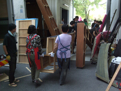 | ◆第119回例会報告 劇団プーク公演「怪談 牡丹燈籠」が9月22日(土) に行われました。 会場は今治市中央公民館です。 ★午前10時25分です。 トラックがすでに到着しています。トラックは2台です。 ★午前10時30分 搬入も始まりました。 トラックはからっぽになりました。 この箱の中身は?・・・・・・・・・・・・・・・・・・・・・・・お人形さんでした! ★11時30分 搬入終わり 制作・井上さん と打ち合わせです。 ★午後5時 会場準備も進んでいます。 ★午後5時40分 ロビー 担当サークルの打ち合わせ 3名クリアです! \(^o^)/ 制作 井上さんの 挨拶です。 「クリアおめでとうございます! これからも一緒にがんばっていきましょう!」 ★午後6時 開場です。 若い募金係り。たくさん入れてくださ〜い! ★午後6時30分 開演です。 人形劇です。5月の人形浄瑠璃とはずいぶん違います。 操る人は黒い衣装ですが、見えています。 でもお人形が生きているように見えます。 見えているはずの人の姿が消えていきます。 お人形さんが 舞台に浮き出るようです。 お人形さんは空間を縦横に駆け巡り、私たちを驚かせました。 時に恥じらい、時におびえ、身もだえ、放心する。 私も、あなたも、きっと学びました。 欲はほどほどに・・・ そして、今日の物語の主役は 伴蔵さんでした。 カーテンコールは 拍手!拍手! 円朝さんに プレゼントを渡して・・・拍手 !! ★午後8時30分終演。 ロビーに お人形さんが出てきてくれました。 みなさん 記念写真 です。 搬出作業が進んでいます。 搬出も1時間ほどで終わりました。 ★作業は終了です。明日は鳴門、ご苦労様でした! |