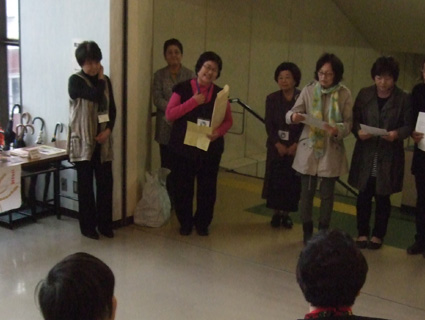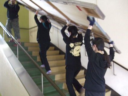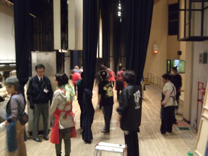 | ◆第122回例会報告 前進座公演「夢千代日記」が3月26日(火) に行われました。 ★例会前日 3月25日(月) バスで劇団のみなさん到着です。 前進座のみなさん ようこそ今治へ! いまむらいずみさん と 今村文美さん ★3月26日(火) 10時です。会場は今治市中央公民館です。 トラックが会場に すでに到着しています。 搬入が始まりました。 搬入担当は藤井さんです 搬入の注意 けがをしないこと! トラックから 機材が降ろされます。 まず、会員の仕事は4階の舞台袖でエレベーターから降ろされる荷物を待つことです 藤井さんの足元に質問?「なぜみんな雪駄を履くの?」 脱ぎやすいから! エレベーターから舞台セットが降ろされてきます 柳生さんです↓ エレベーターに入らない大物は階段を4回まで持ち上げます 回転できますか? 前進座の女性は力も有ります バリィさんTシャツが! 大物は降ろしました。 舞台作りに必要な 平台です。 今日のために借りてきました。借り賃が別枠で・・・痛い出費(涙)(T_T) 控え室が少ないホールなので・・・ ↓これロビーの一角に臨時の仮設控え室製作中 舞台上では照明が取り付けられていきます ★11時30分 ロビーで 製作/豊田さん、担当/柳生さん と打ち合わせです 臨時控え室を ちょっとのぞいてしまいました。 ★午後5時 対面式です クリアでお迎えできてよかったです 会員さんの会場準備が始まりました 影アナの村瀬さん 打ち合わせ ★午後5時45分 ロビー 担当サークルの打ち合わせ 司会は村上さん クリアです! \(~o~)/ 担当の皆さんががんばってくれました。 ロビー交流会は ロビーが搬出に使われるため急きょ中止になりました。 製作豊田さんのあいさつ クリアおめでとうございます! 夢千代日記は前進座の女優たちががんばっています。 ★午後6f時 開場です ★午後6時30分 開演です。 湯の里温泉の小さな置屋に暮す女たちの群像劇。 それぞれに心の傷を持ちながらも肩を寄せ合い生きている。 広島原爆による体内被曝という宿命を背負う夢千代を中心に 過去からの再生、 「生きるために大切なものは何か」と 私たちに問いかけます 苦難にまけるな! 運命なんか吹き飛ばせ! 夢千代さんが言います 「あと1年しか生きられない」じゃない「まだ1年も生きられる」 いまばり市民劇場だって、「400人しかいない」じゃない「400人もいる」という発想でやりぬこうよ!! 拍手!拍手!笑い!涙!拍手! 大拍手! 前進座ならではの演出に 旅役者の舞台場面が有りました。 殺陣が素晴らしかった。マトリックスを連想させる殺陣で ヒーロー見参!大拍手! ★午後9時25分終演。 ★すぐ搬出が始まります 仮設の控え室はもうカラッポです 多くの会員さんが残ってくれています 平台の ばらし作業が見られました ↓ラスト場面の満開の桜の木です こんな風に作られているとは! 会員さんの搬出は1時間ほどで終わりました。 ★作業は11時30分を過ぎて終了です。明日は松山。 ご苦労様です! ★3月27日 午前11時 今治駅にて 今村文美さんや いまむらいずみさん たちが待っていてくれました 記念写真です |