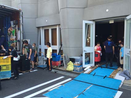 | ◆第136回例会 「ブンナよ、木からおりてこい」 報告 7月7日(木) 青年座「ブンナよ、木からおりてこい」 がありました。 ★7月7日(木) 午前10時 2台のトラックが止まっています。 けがをしないように 敷居を越えなければいけません 搬入が始まりました。 スタッフ・役者さん、皆さん元気です。 搬入は30分ほどで終わりました。 制作 長尾さん 打ち合わせです 対面式です。クリアの報告ができました。 ★午後5時 会場がにぎやかになってきました。 ★17時50分 開場前の打ち合わせです。担当は苅田さんの代理で沖濱さん 今回はなんとクリアできました!会員数301人を確保できました。 ★18時開場です ★午後6時30分 開演です ブンナはトノサマかえる。 土がえるといっしょの池では若手のリーダーだ。 そんなカレが新天地=椎の木のてっぺんを目指し、まさにその地に立った時からの地獄の物語。 そこがとんびのえさ倉だと分かった瞬間の恐怖から、 えさとして連れてこられた、もず、すずめ、蛇、ネズミ が 死を目の前にして、もがき、苦しみ、後悔し、短い人生を振り返り、思いがたりをする。 これが地獄だ! 地獄の閻魔様に真実をあからさまにされるように、全てを吐き出して死んでゆく。 ブンナは幸運にも生きてこの地獄から地上に降りることができる。 そして、悟りを開く(=真実を学ぶ)。 命の連鎖。全ての命が命のバトンをつないでいるということ。 どの命にも 母親がいて、子に生きるすべを教えているということ。 地獄の火につつまれた熱い芝居を熱演する、役者たちの汗が飛び散る。 アツイ、アツイ、燃え盛る 舞台だった! 拍手!拍手! \(~o~)/ 終演です。 ロビー交流会が始まります。 出演者皆さん出てきてくれました。 左から 佐野さん 名取さん 石母田さん 逢笠さん 大家さん 前田さん 私は蛇さん 一押しです 集合写真です 搬出が進んでいます。 搬出終わりです。 最後にハイタッチで終わりました。盛り上がりますね 搬出は10時終了です。 あすは徳島 みなさんお疲れ様でした! |